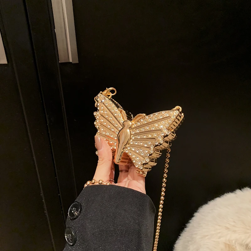 Women Acrylic Butterfly Shaped Mini Evening Bag Novelty Chain Strap Fashion Crossbody Bag Shoulder Handbag For Wedding Prom Banquet