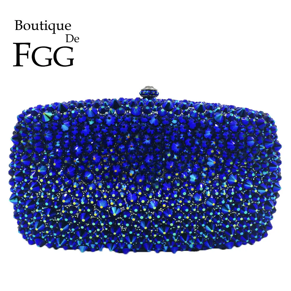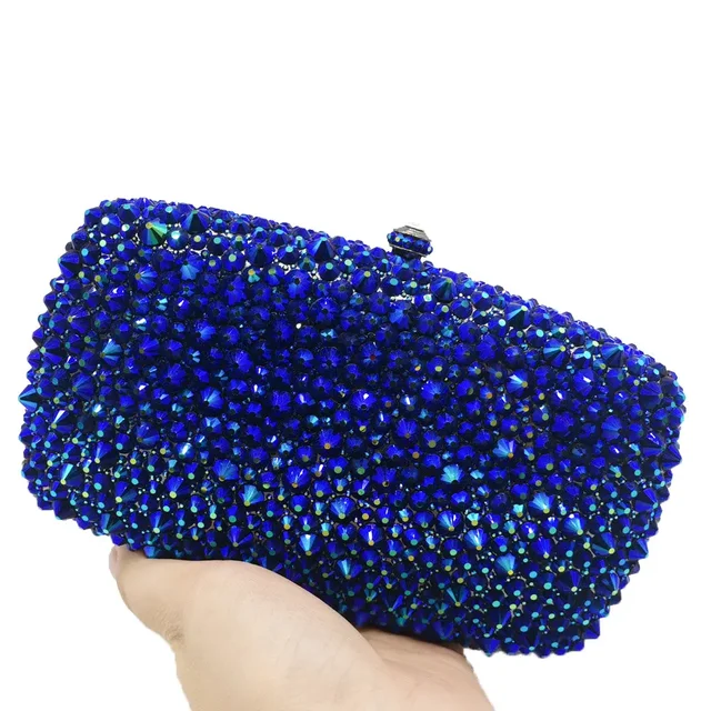 Elegant Women Blue Crystal Evening Clutch Purse and Handbag Bridal Wedding Diamond Metal Clutches Minaudiere Bag