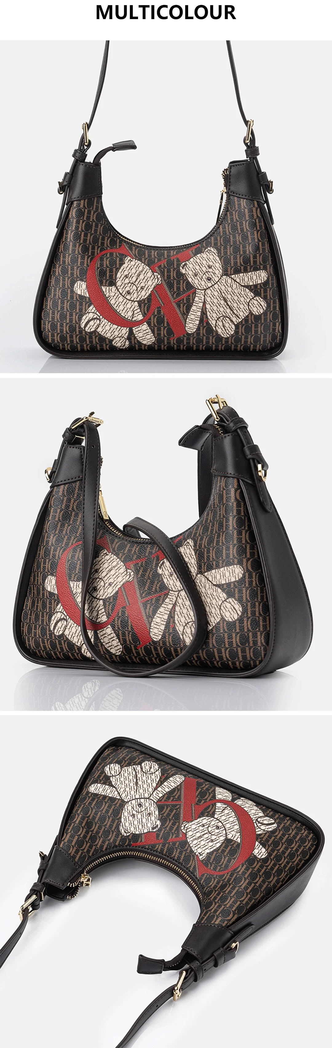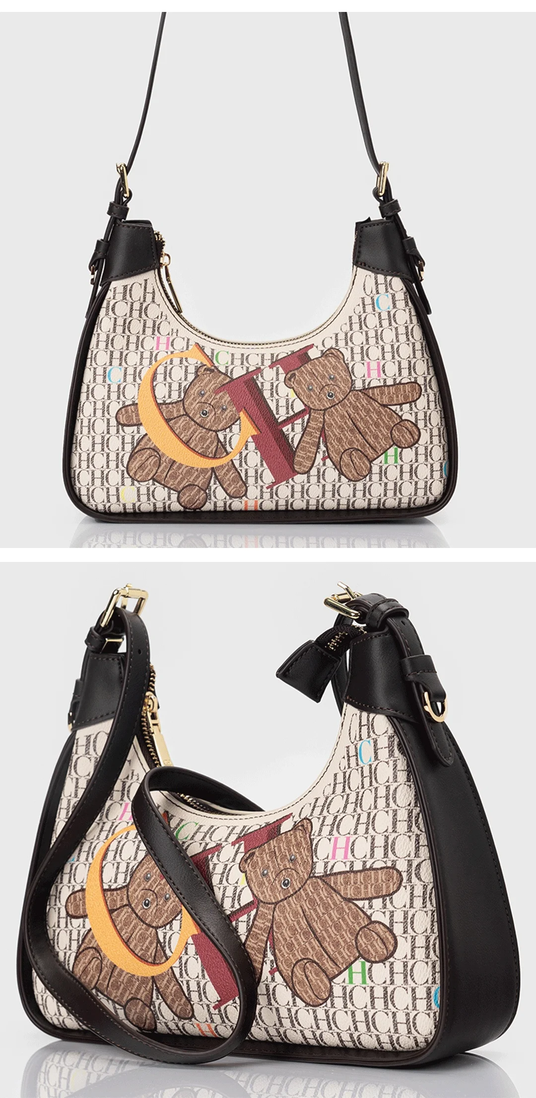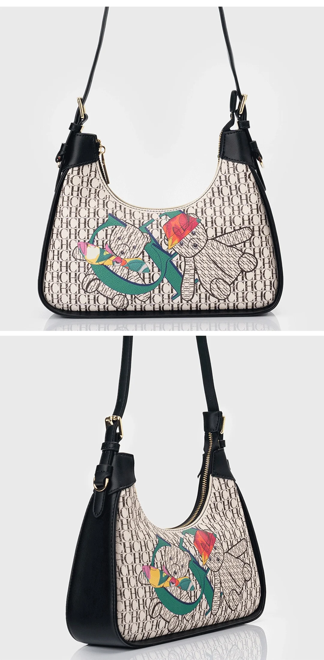 CH Simple Solid Color Women's Shoulder Bag Commuter Chain Tote Trendy Bent Moon Bag Cute Animal Printing Design Large Capacity