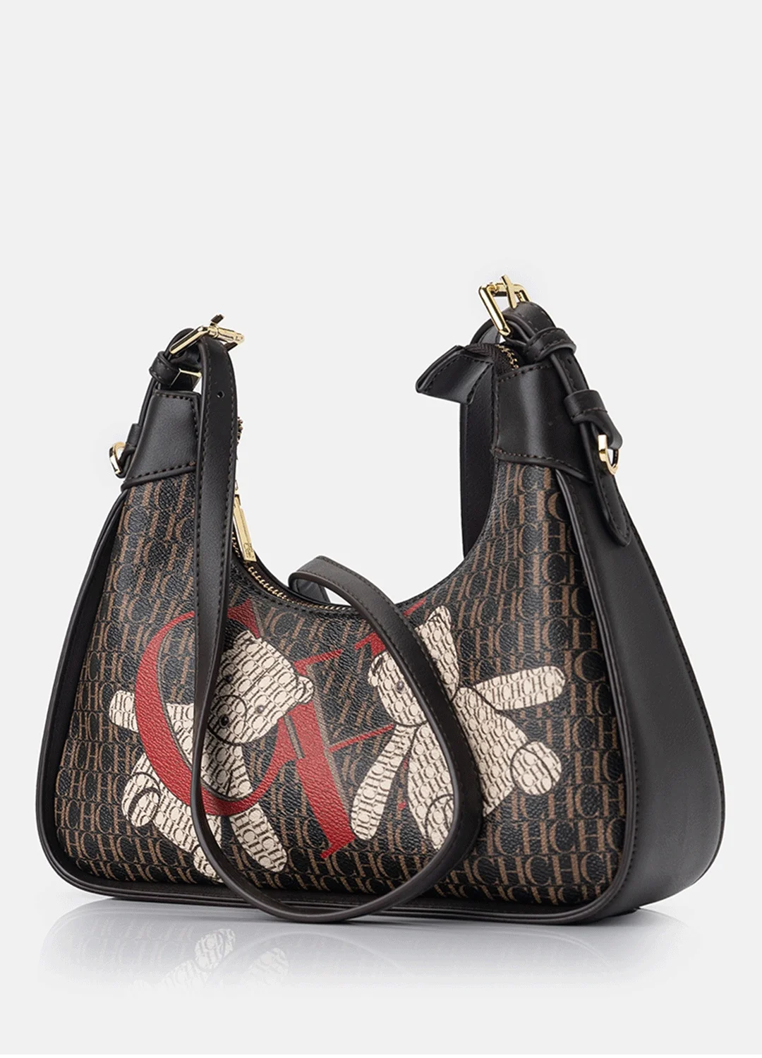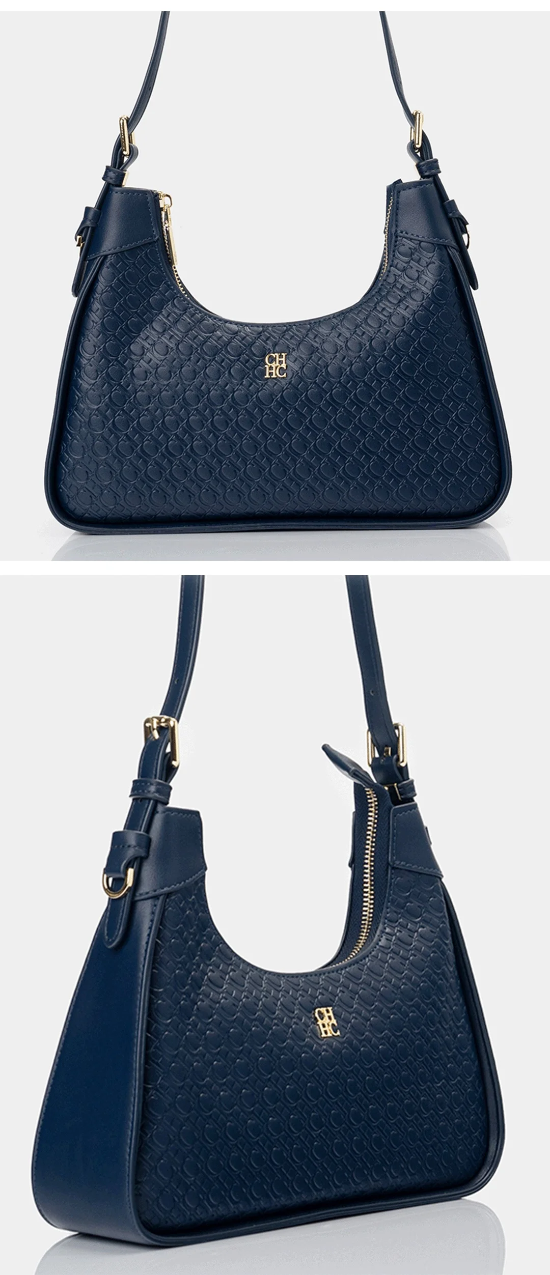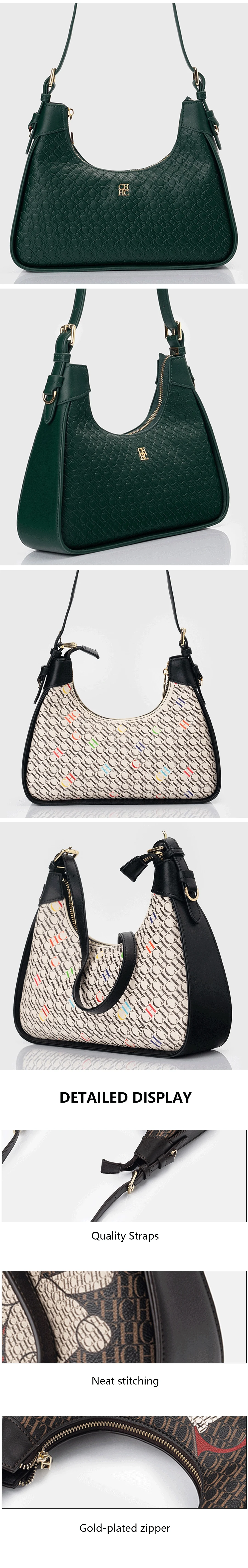 CH Simple Solid Color Women's Shoulder Bag Commuter Chain Tote Trendy Bent Moon Bag Cute Animal Printing Design Large Capacity