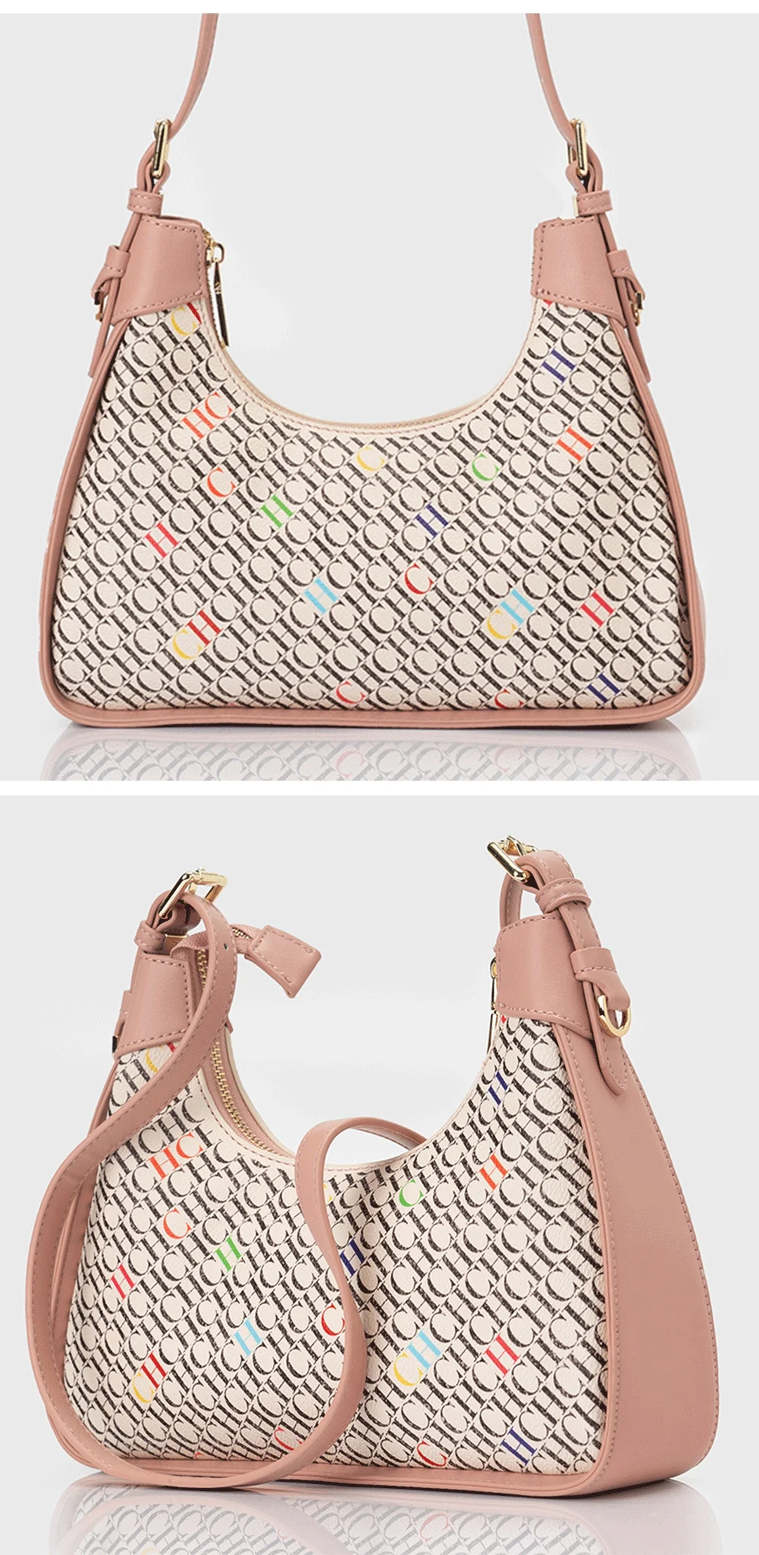 CH Simple Solid Color Women’s Shoulder Bag Commuter Chain Tote Trendy Bent Moon Bag Cute Animal Printing Design Large Capacity – bags