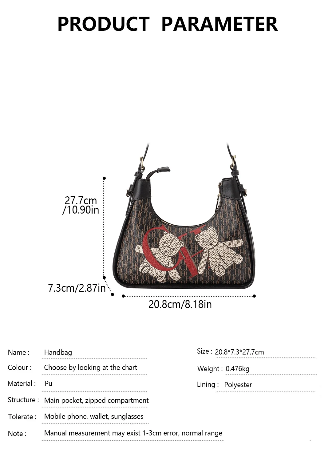 Be the first to review “CH Simple Solid Color Women’s Shoulder Bag Commuter Chain Tote Trendy Bent Moon Bag Cute Animal Printing Design Large Capacity”