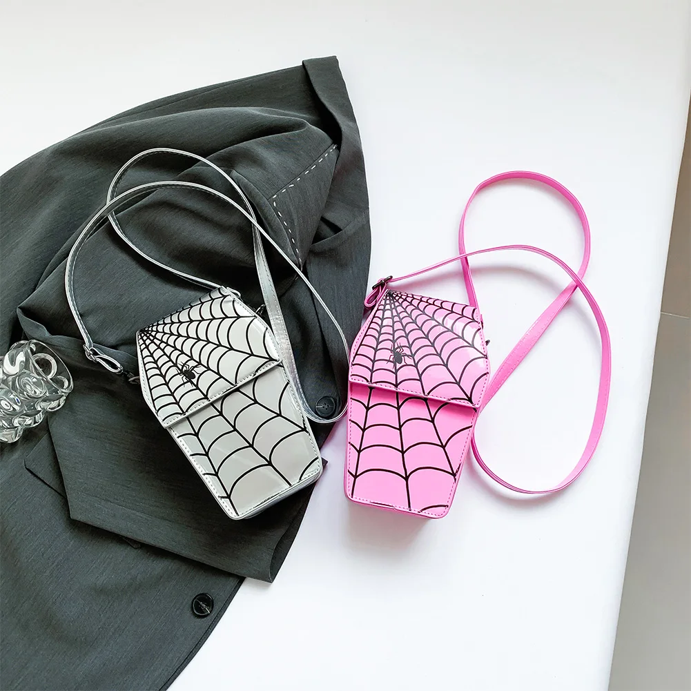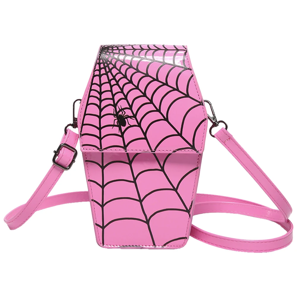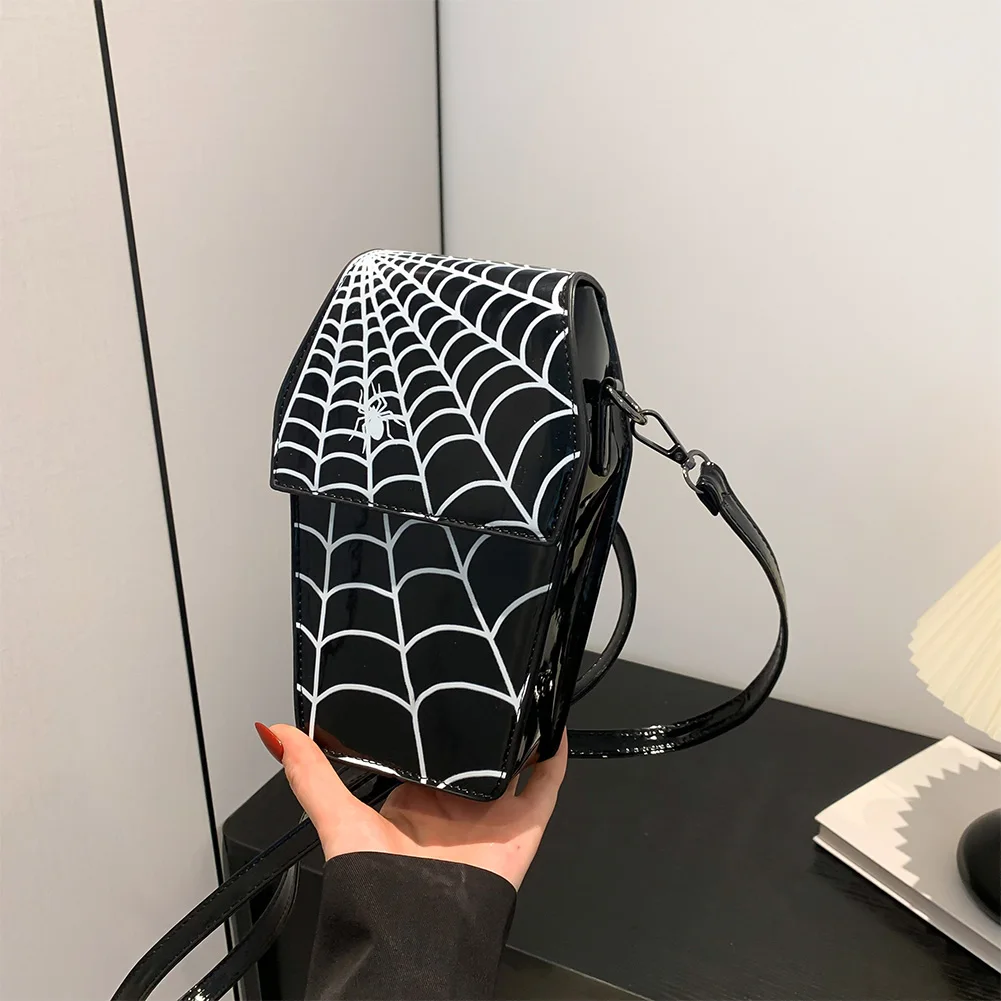 Gothic Coffin Shape Shoulder Bag for Women Spider Web Crossbody Bag PU Leather Adjustable Strap Hobo Bag for Halloween Cosplay