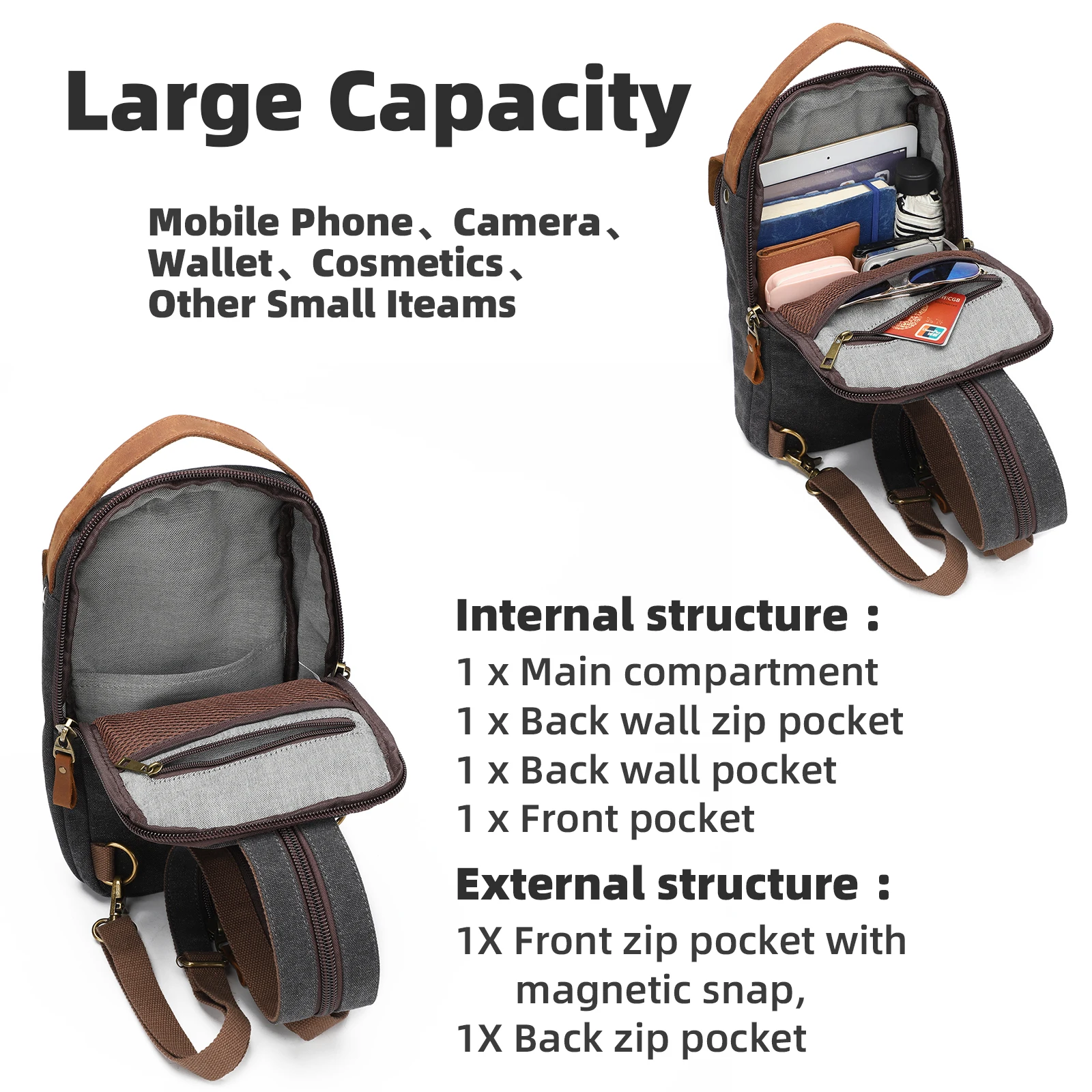 KL928 Canvas Sling Bag Crossbody Backpack Sling Backpack Shoulder Bag Casual Daypacks for Men Women – bags