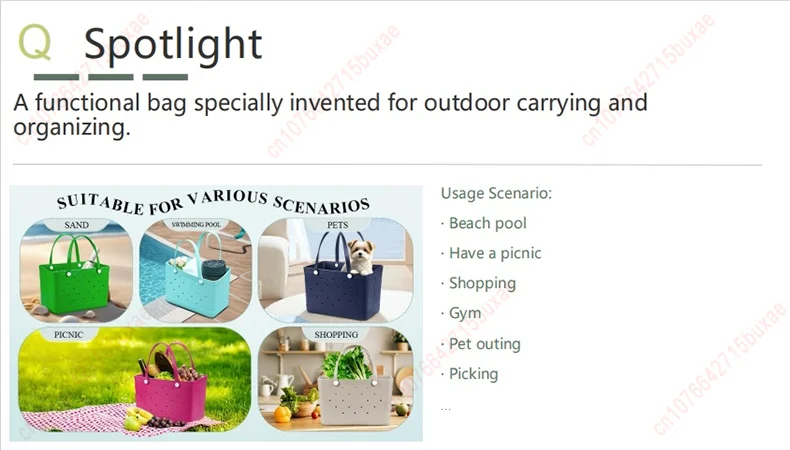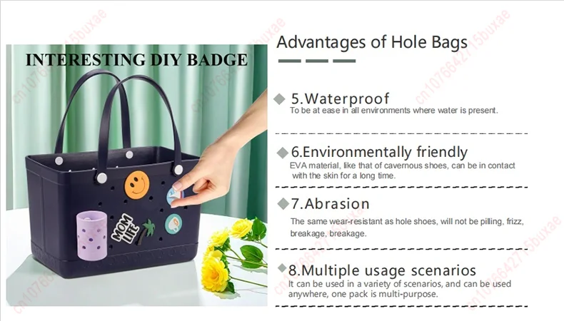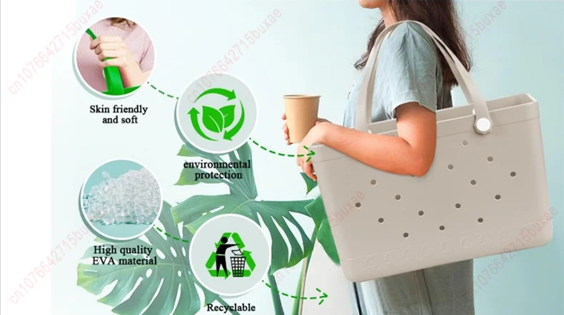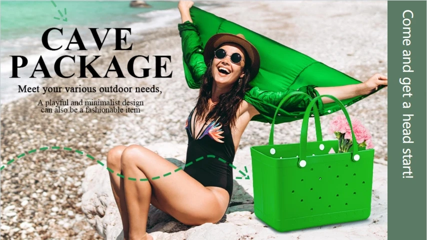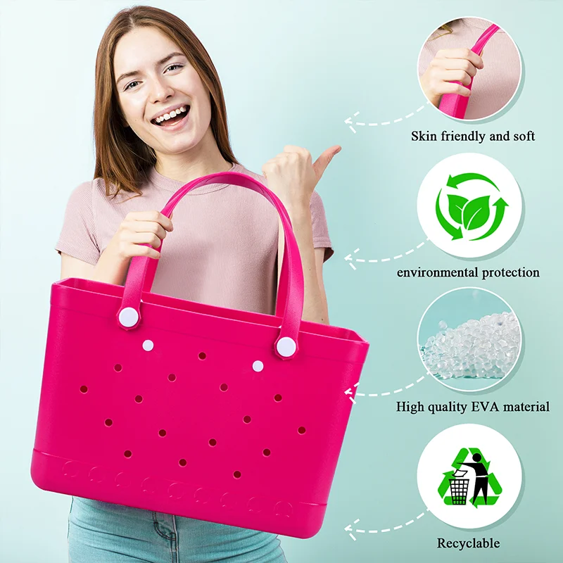 1. Eco-friendly material : This outdoor travel bag with holes is made of high-quality EVA material, which is strong, durable and dries quickly. These bags have lovely shapes and colors. Using this outdoor bag can help you protect the planet while looking more glamorous.