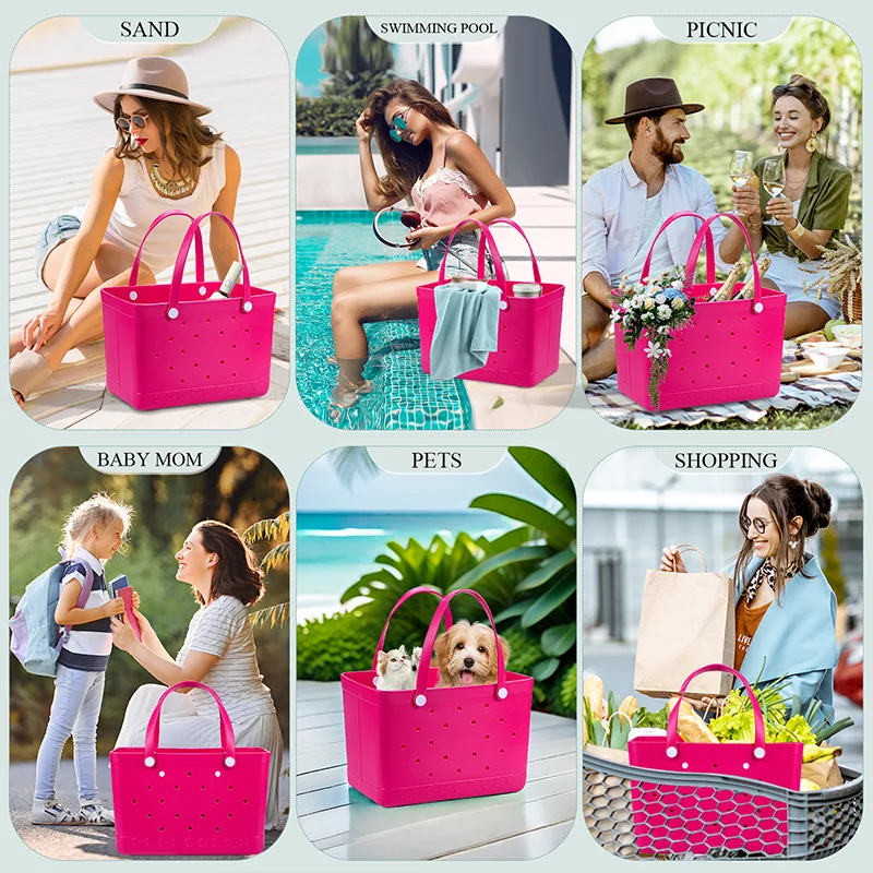 Large Beach Bag Summer EVA Beach Basket Women Picnic Tote Bag Holes Waterproof Handbag Pouch Shopping Shoulder Bag – bags