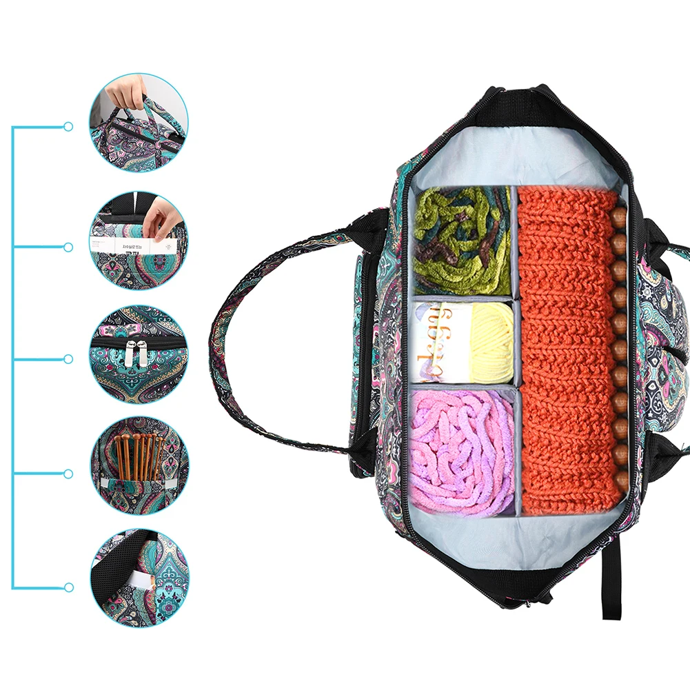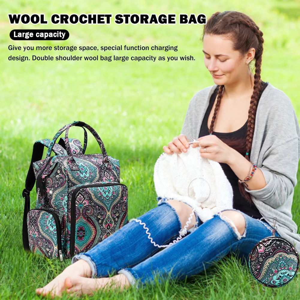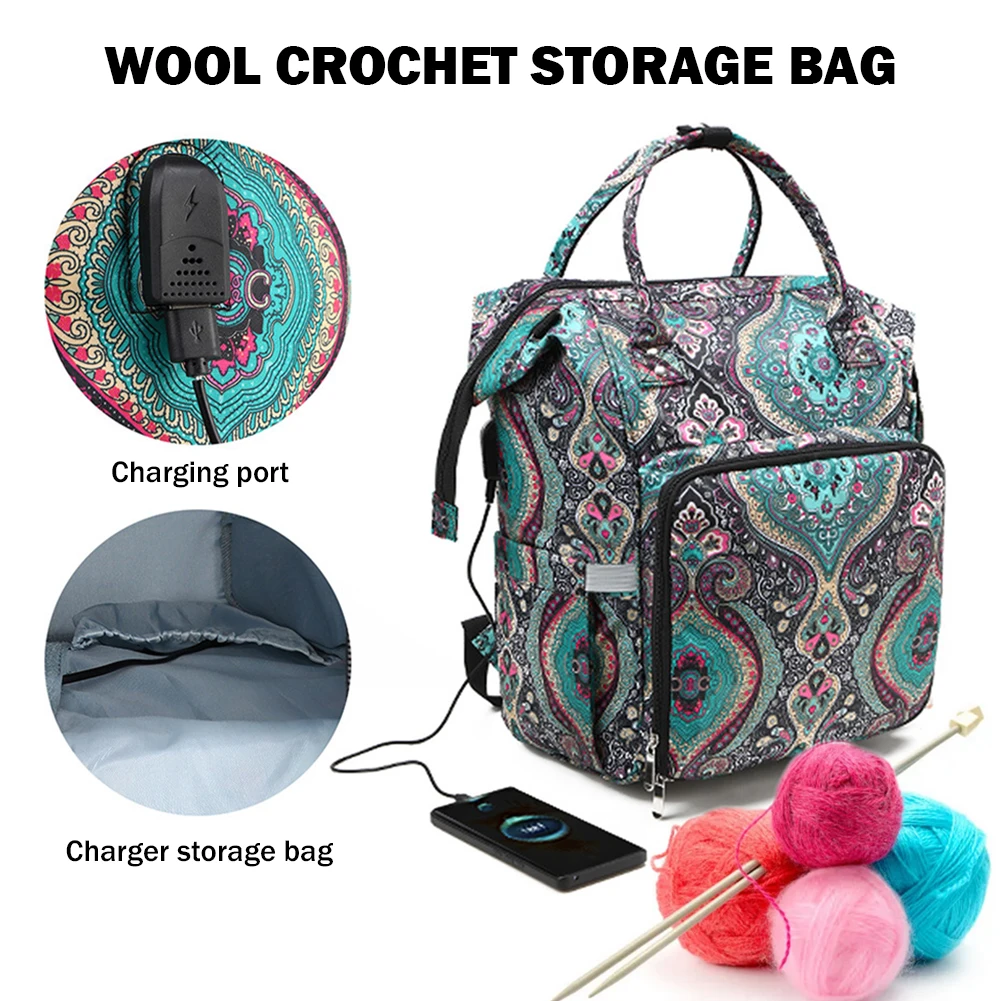 Knitting Bag Large Capacity Crochet Yarn Organizer Bag Lightweight Wear-resistant USB Charging Function for Sewing Crochet Hooks Specification: