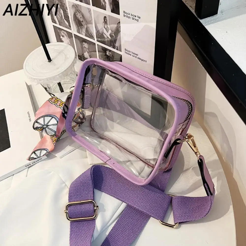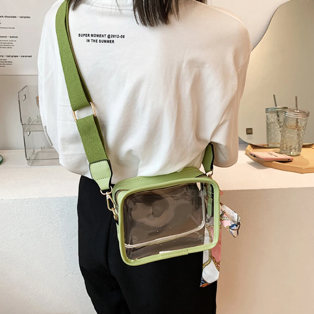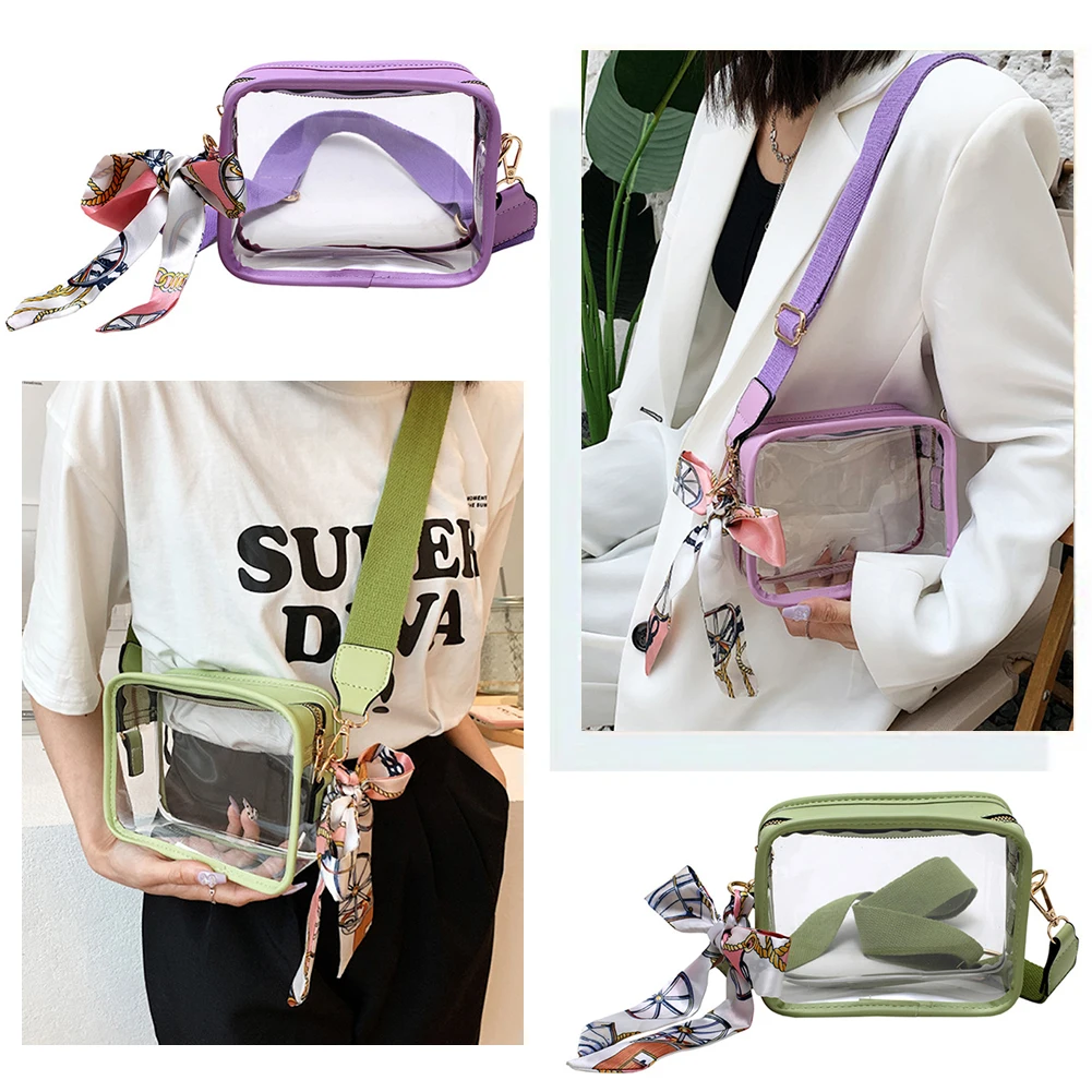 Summer Crossbody Bag Transparent PVC Ladies Handbag Fashion Casual Ribbon Soft Unlined Adjustable Portable for Girls Shopping – bags