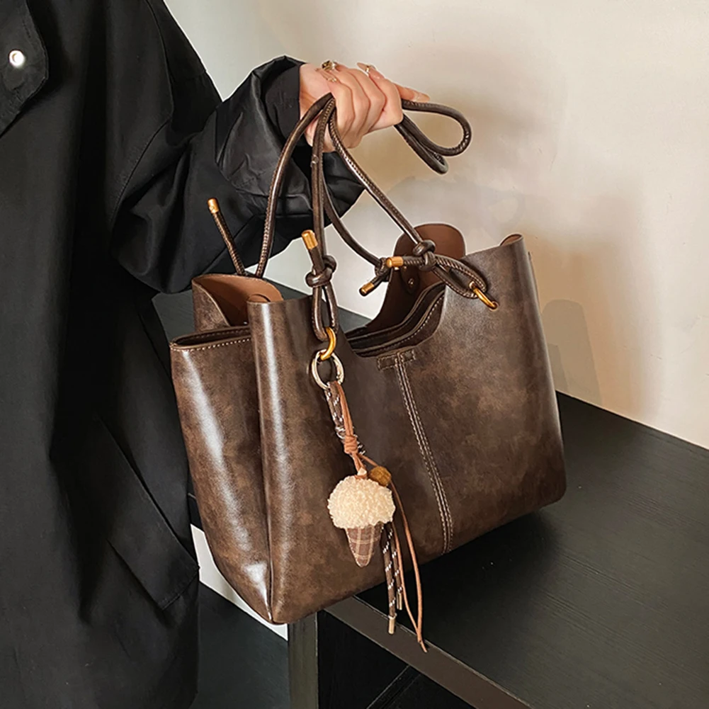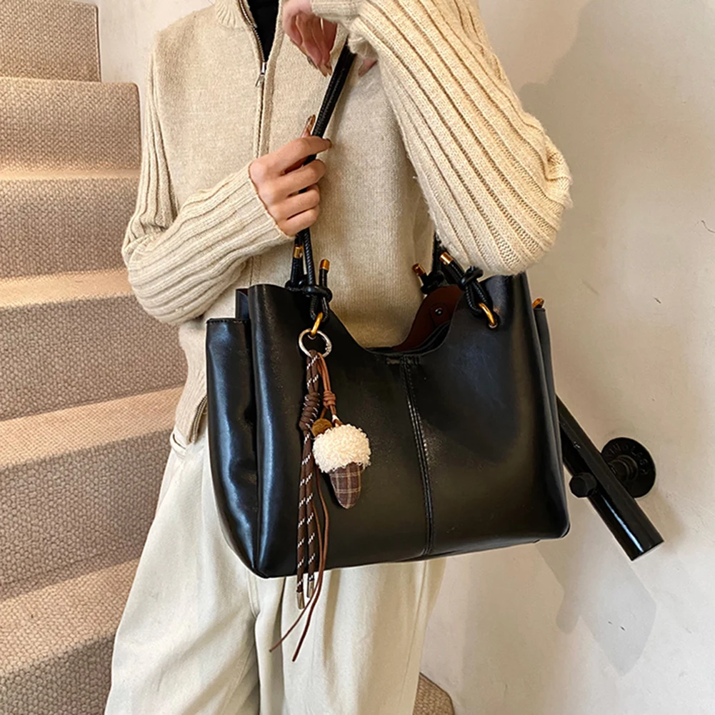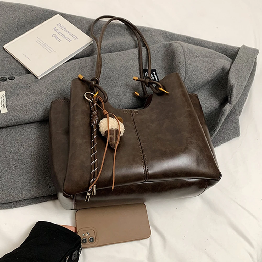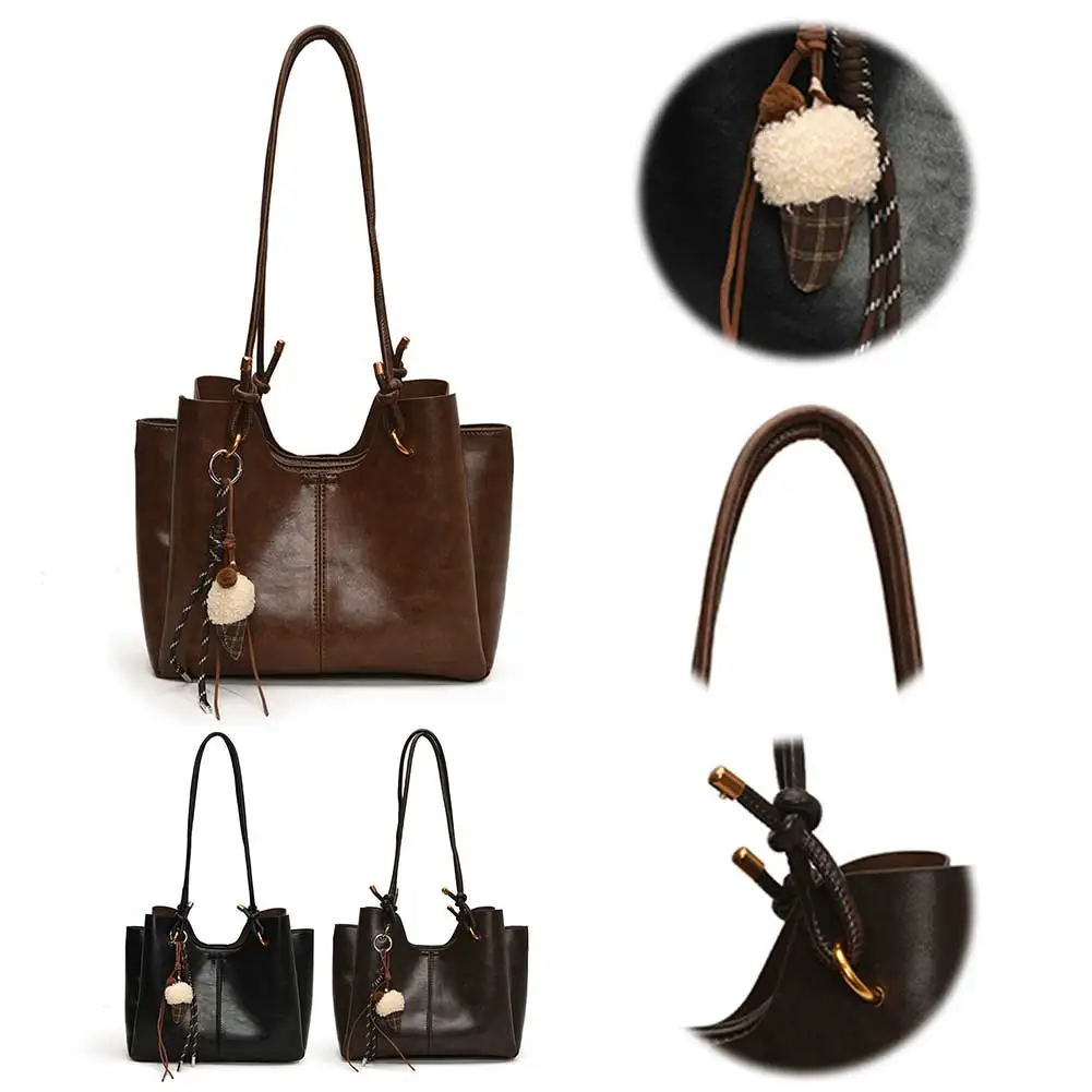 Tote Bag for Women with Compartments Shoulder Bag PU Leather Solid Color Underarm Bag Trendy Handbag for Travel Work Sports
