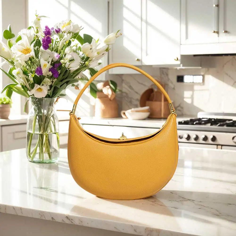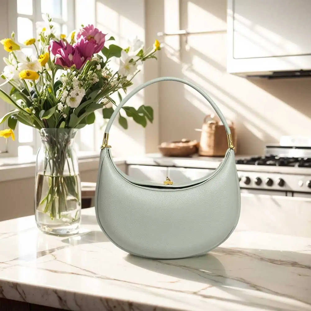 Trendy Shoulder Bag PU Leather Designer Underarm Bag with Zipper Closure Stylish Casual Clutch Purse Half Moon Bag for Women Feature: