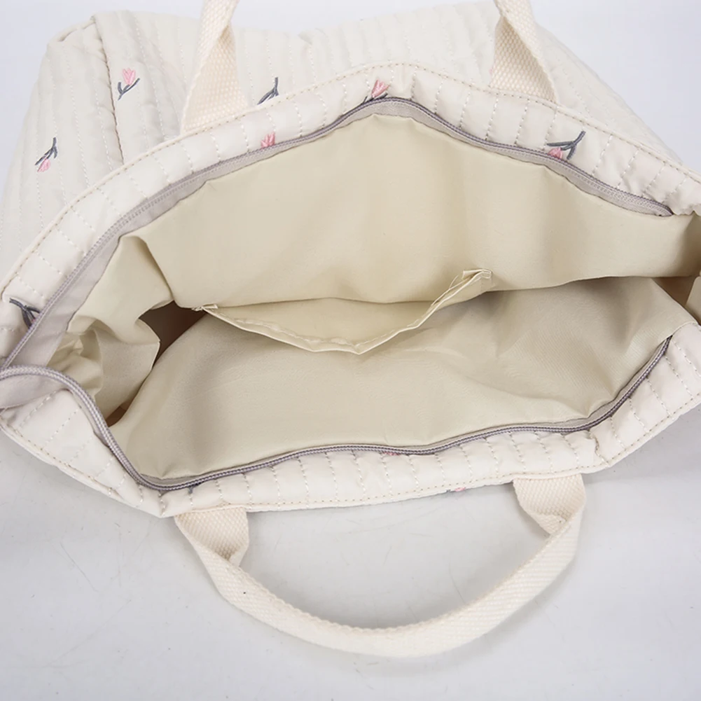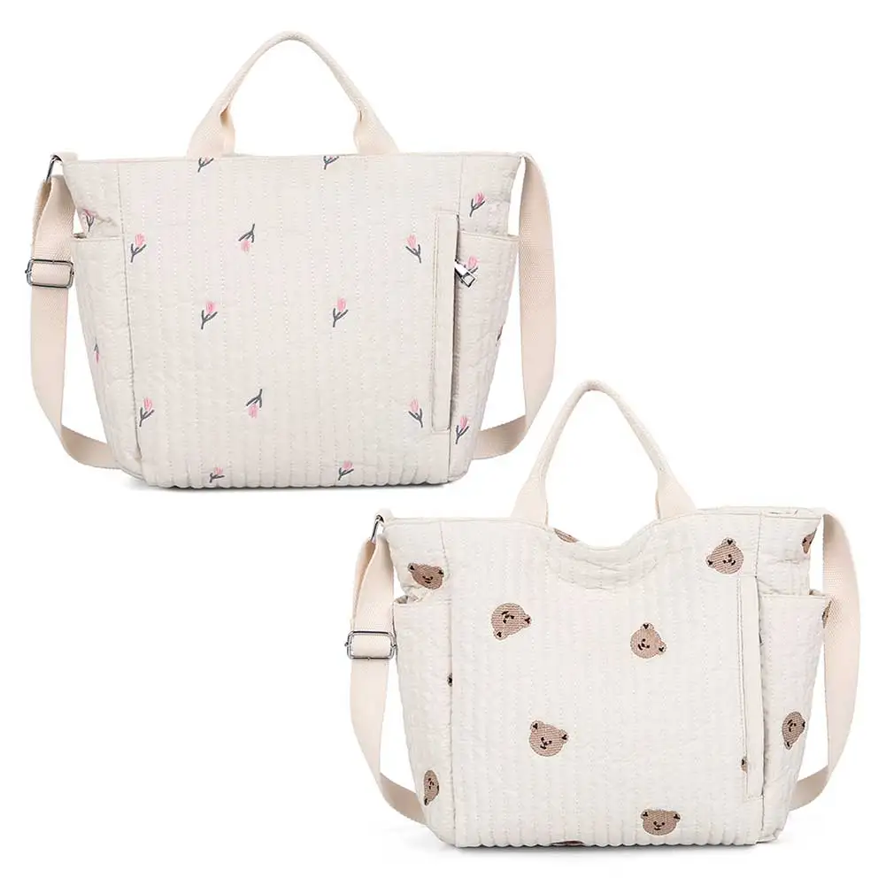 3. Adjustable Design: This cartoon baby nappy bag features a charming floral pattern and adjustable shoulder straps, allowing it to be worn as a shoulder bag or carried as a handbag, effortlessly complementing various styles.