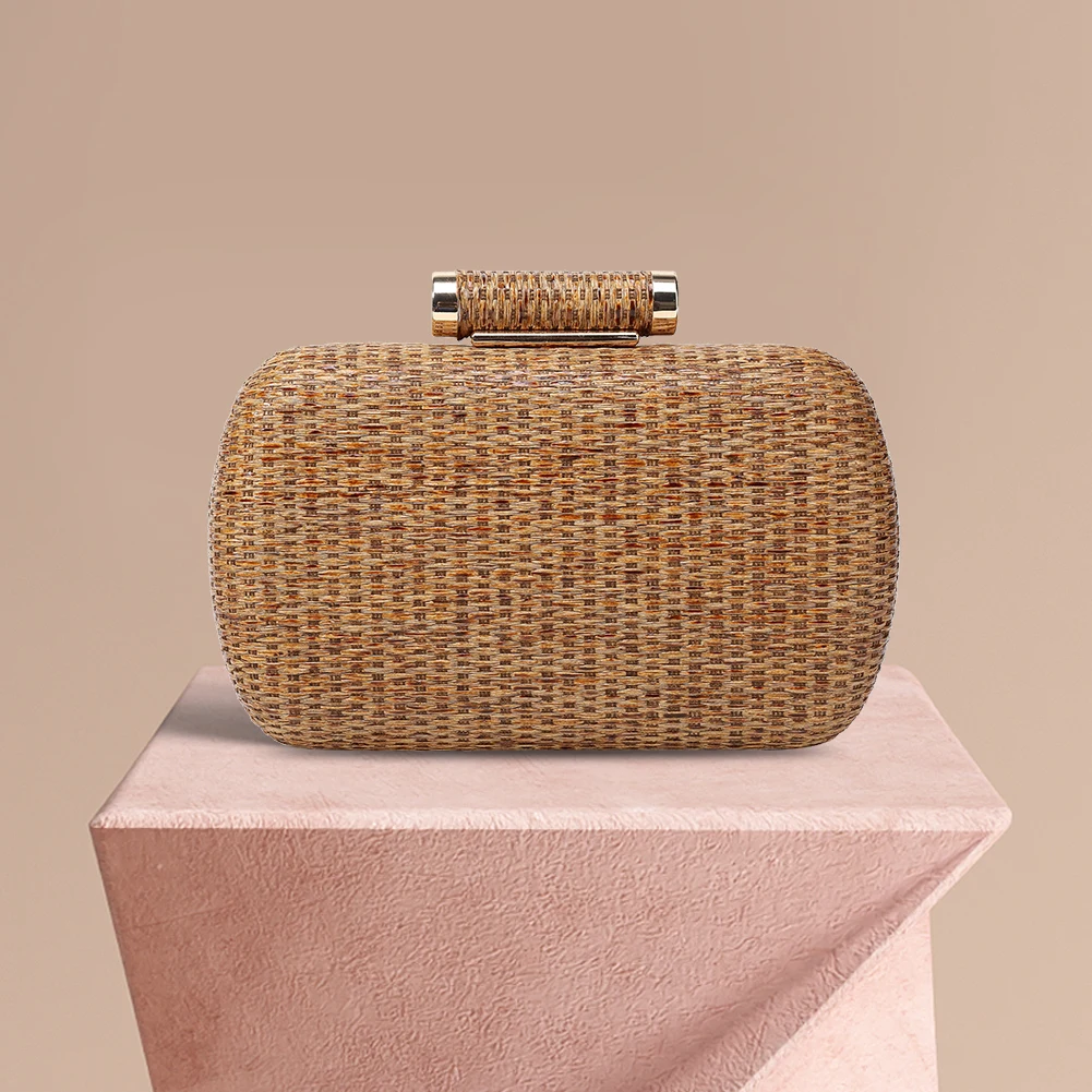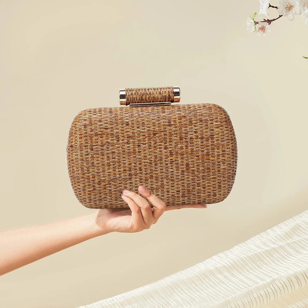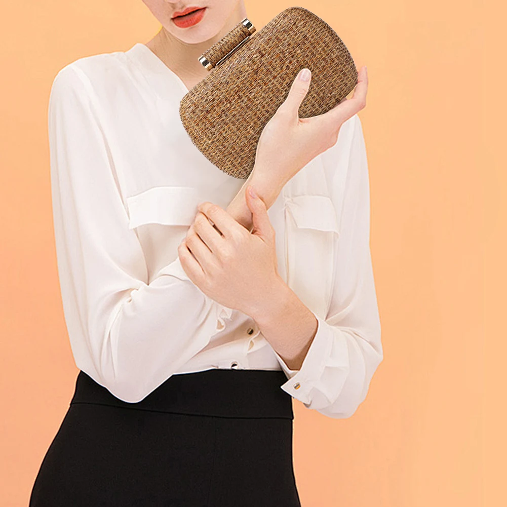 1.Retro Elegance: This straw clutch purse is made with artificial straw and a polyester lining, offering enduring elegance. The exquisite evening clutch is designed to elevate your style and add a touch of class to any attire.
