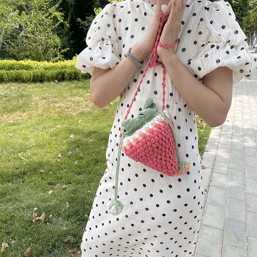 5. Fresh and Fashionable Accessory: With its refreshing colors, the strawberry hand knitted bag becomes a hot topic when paired with light-colored outfits like dresses, T-shirts, skirts, or shorts. Every woman would adore this adorable crochet strawberry bag, making it a perfect gift for friends, colleagues, sisters, relatives, and daughters. It’s also an ideal choice for holiday gifts on occasions such as Christmas, Valentine’s Day, Halloween, and anniversaries.