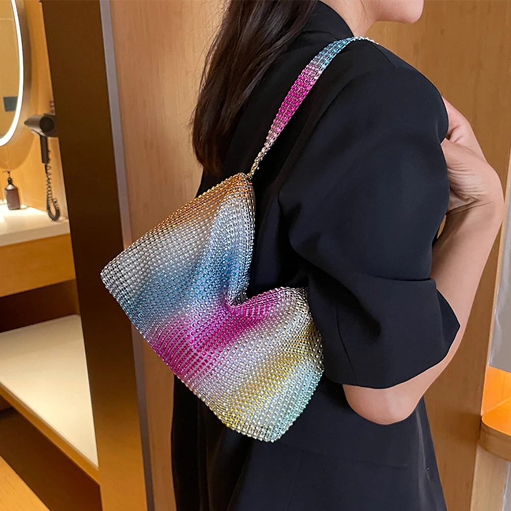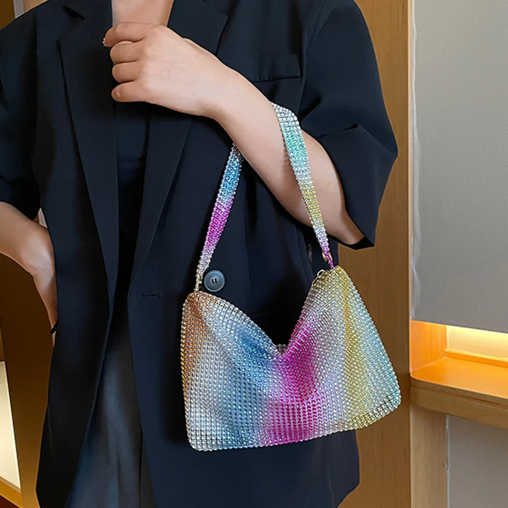 Glitter Evening Dinner Clutch Bag Zipper Closure Women Lady Fashionable Shoulder Handbag Rhinestone Decorated Party Cocktail Wedding Bag Large Capacity Underarm Bag Everyday Shoulder Bag