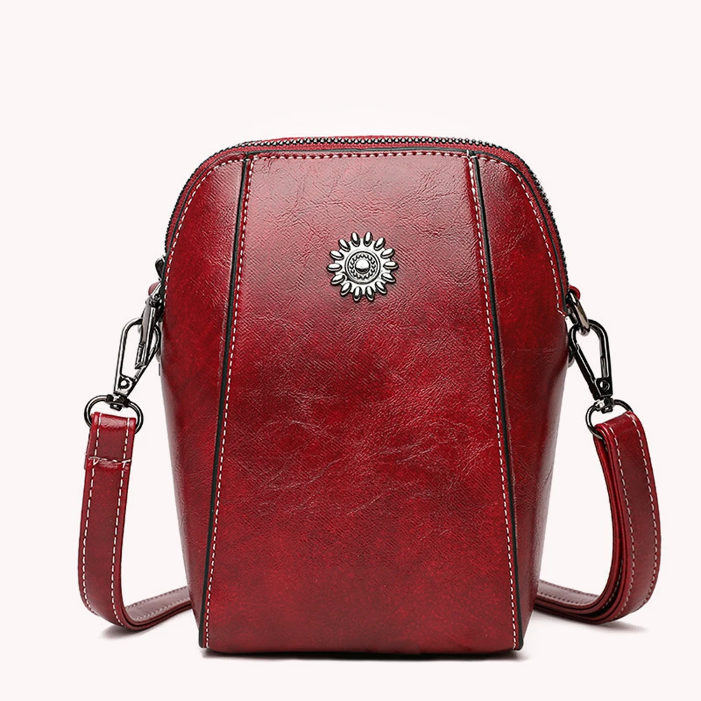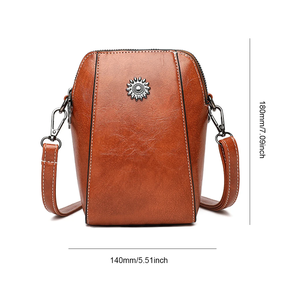 Women All-Match Leather Bag Solid Color Vertical Cellphone Bag Waterproof Scratch-Resistant Versatile Zipper Female Daily Bag