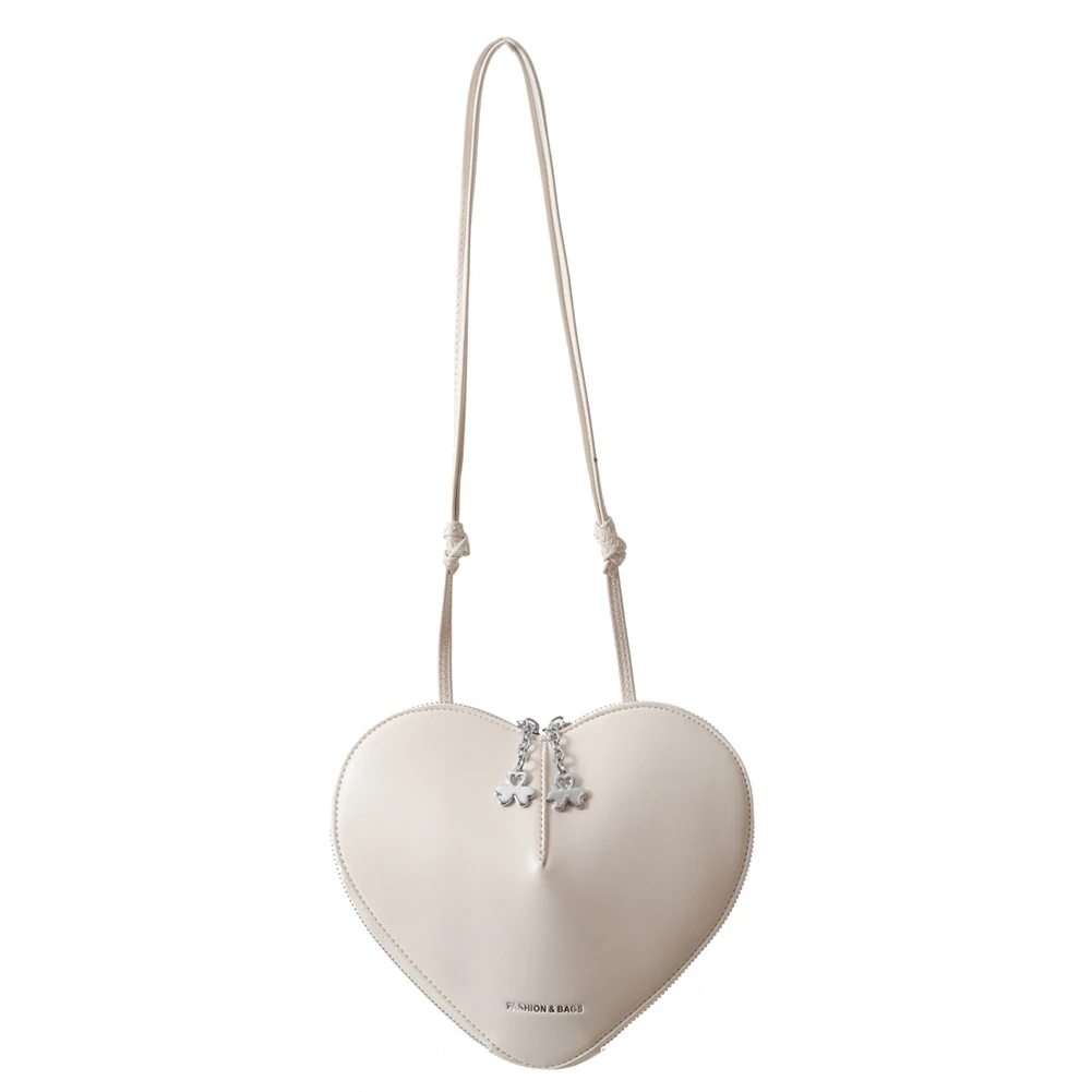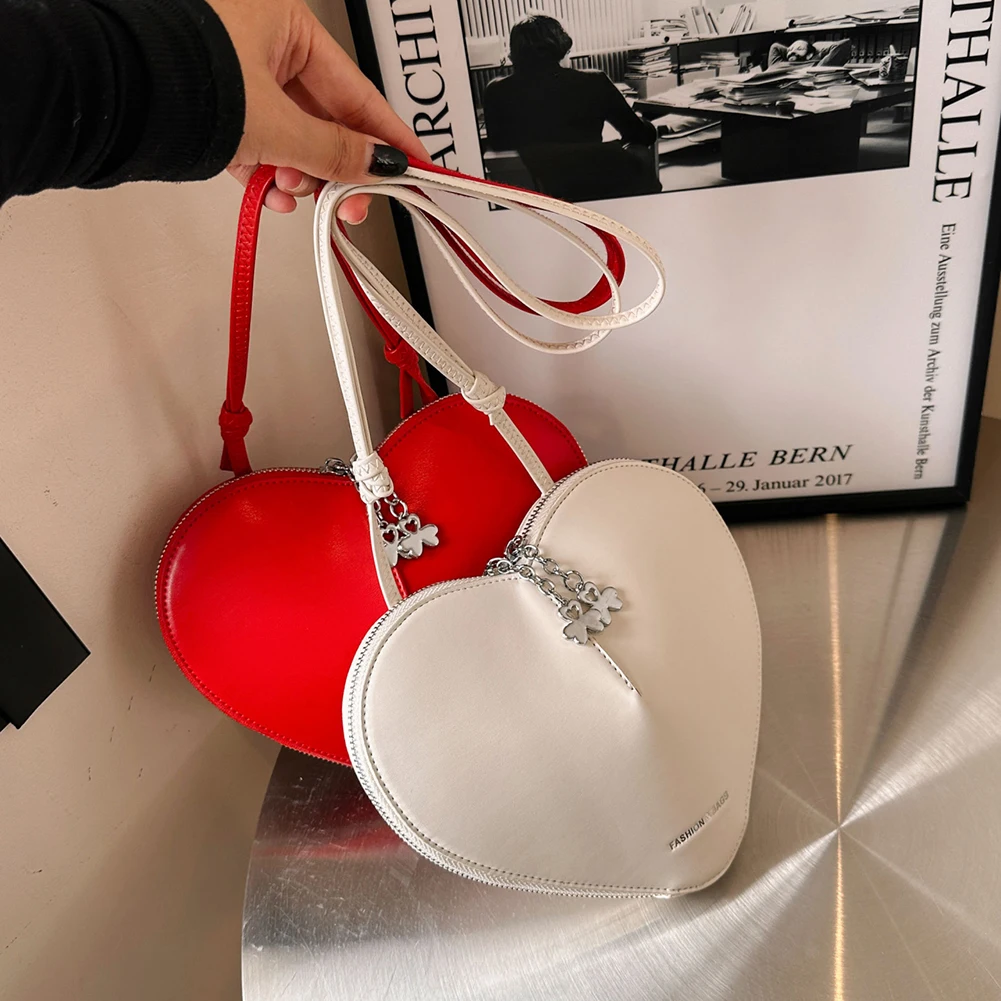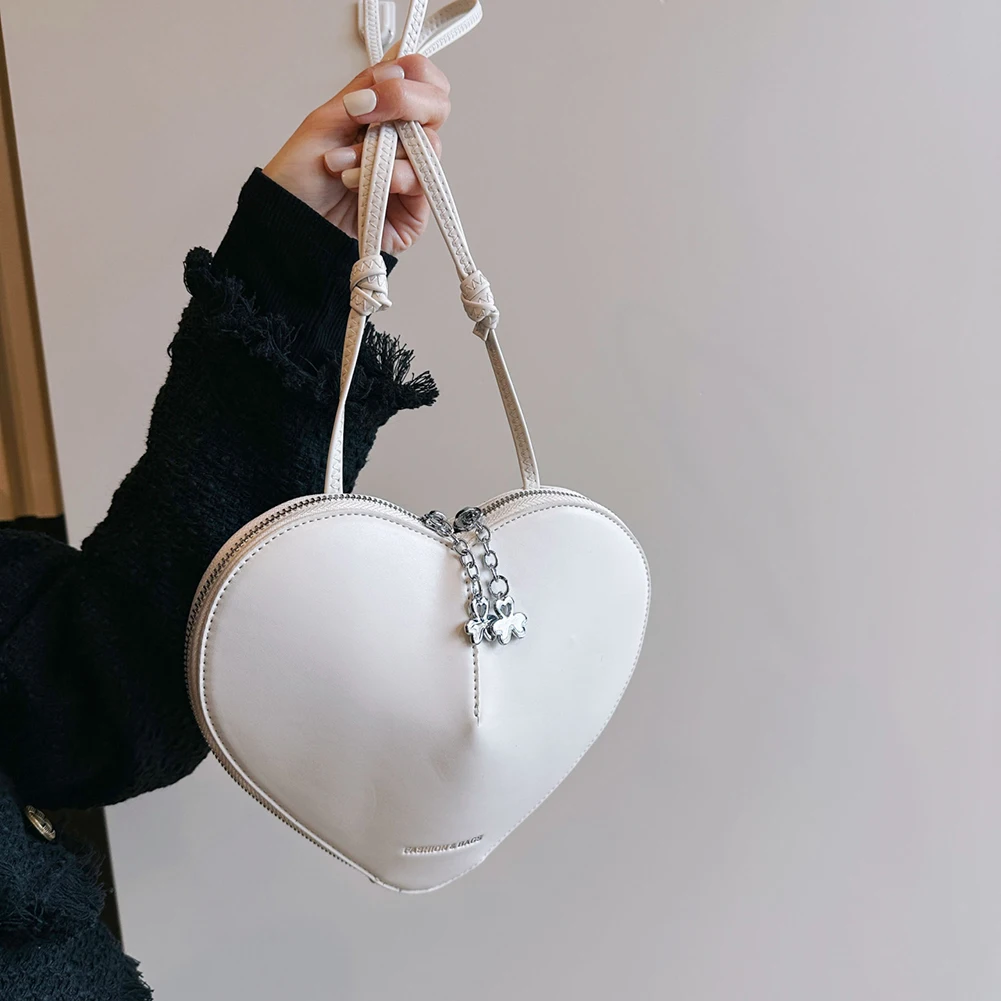 Women Fashion Shoulder Bag Solid Color PU Stylish Crossbody Bag Dual Zippers Heart-Shaped Shoulder Bag Chic Hobo Bag