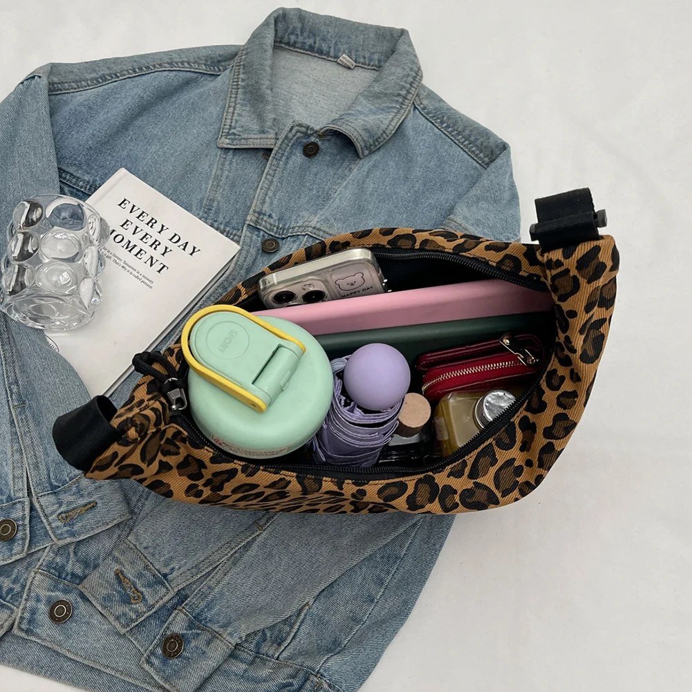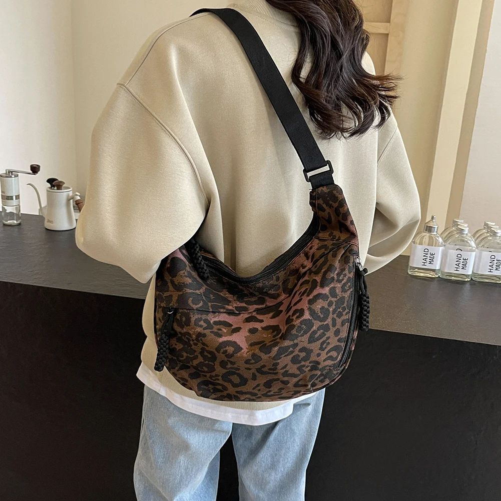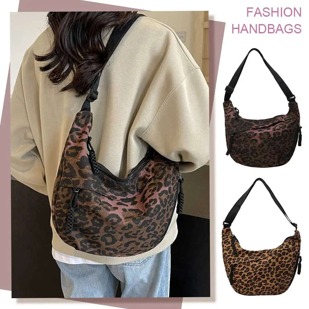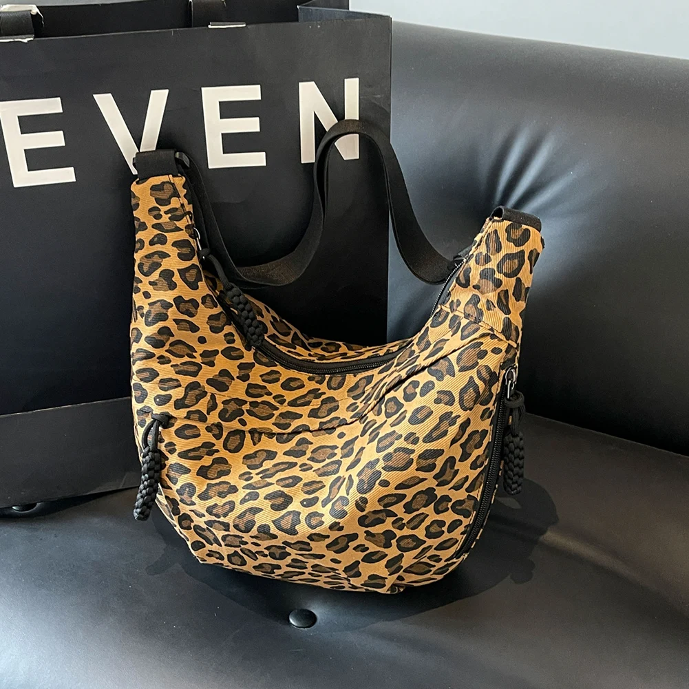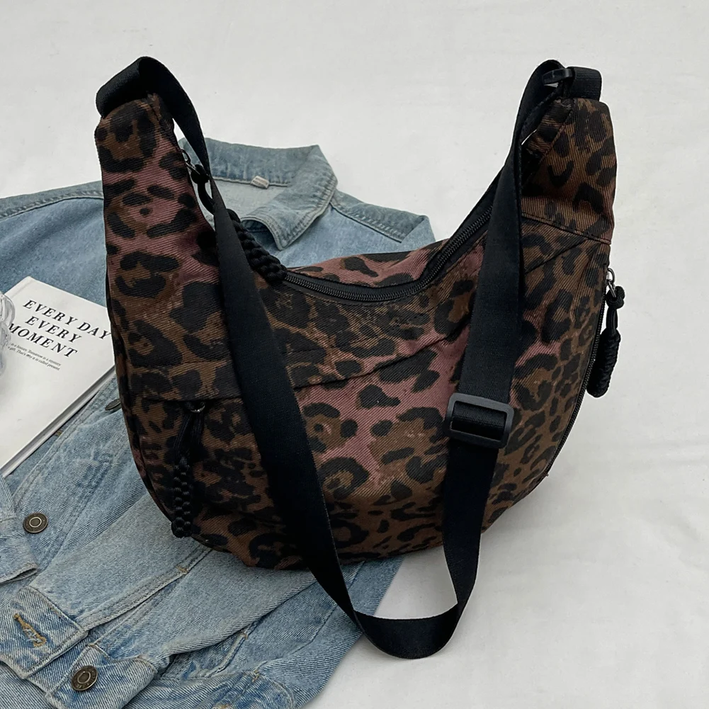 Women Fashion Shoulder Bag Large Capacity Leopard Print Crescent Crossbody Bag Adjustable Strap Half Moon Bag Outdoor Travel Bag