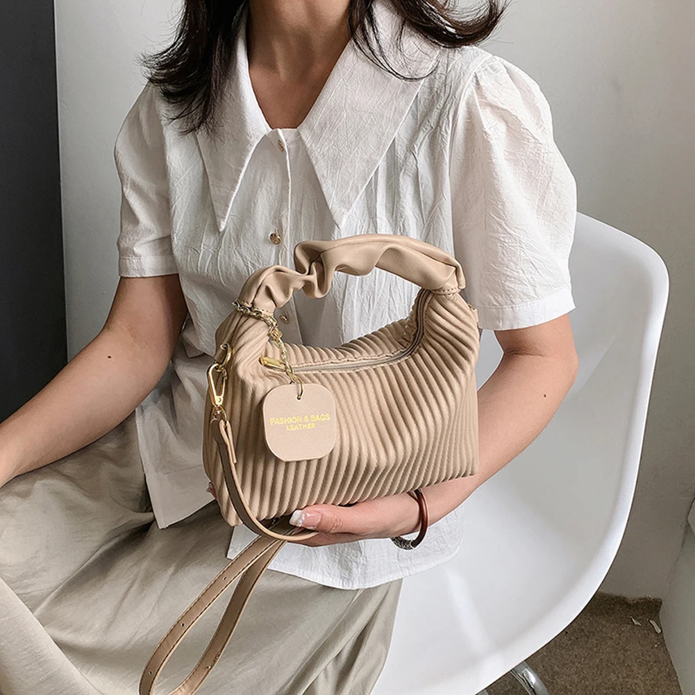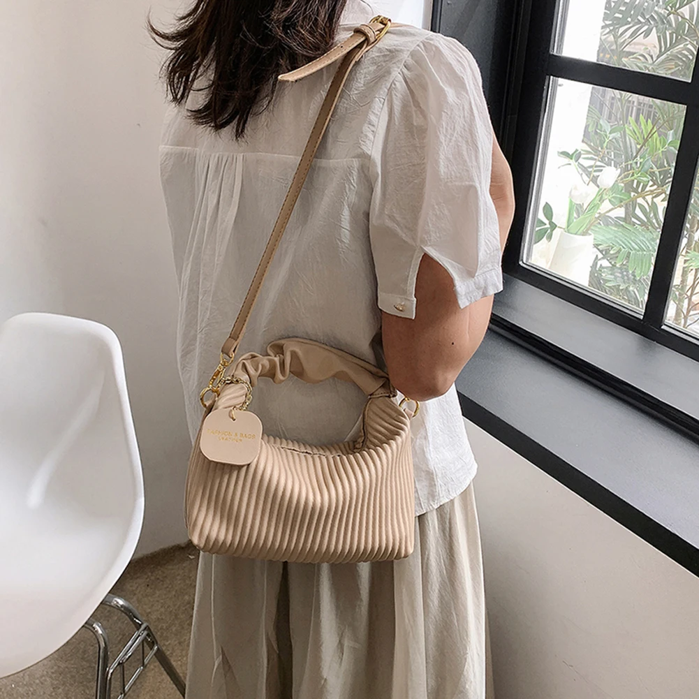 Women Ladies Handbags PU Leather Pleated Cloud Small Tote Bags Fashion Casual Simple Elegant Temperament Girls Tote Purses